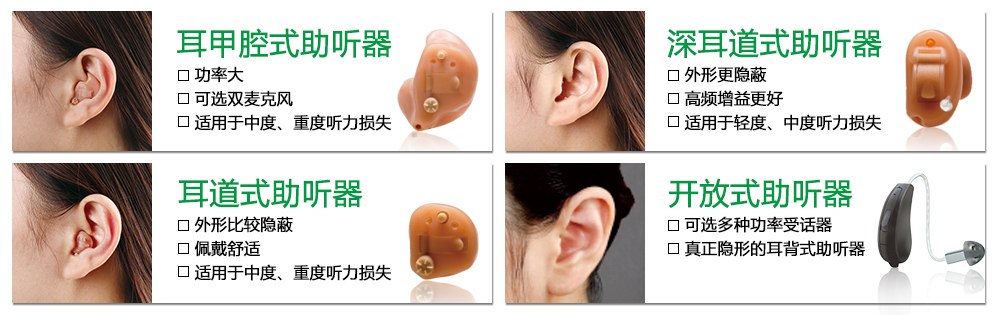 助聽器是幫助人聆聽的工具,適用于有聽力損失的患者。助聽器按外形分:有盒式、耳背式、耳內(nèi)式之分,耳內(nèi)式以外觀又分:耳甲腔式、耳道式、深耳道式和最隱蔽的隱形深耳道式助聽器。