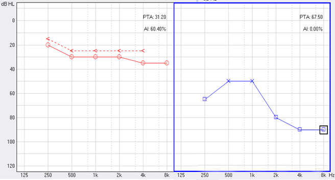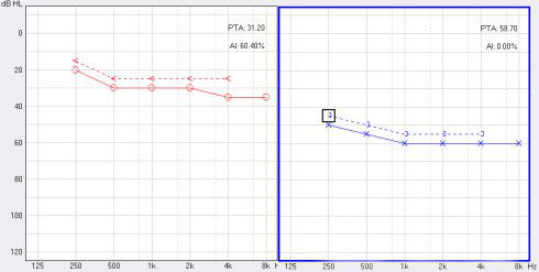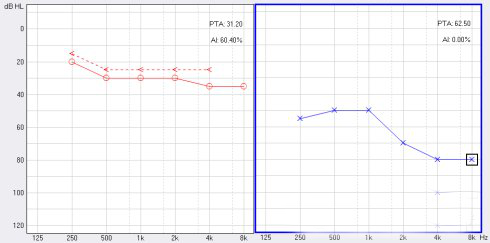 <span style="font-size:16px;"> 純音聽閾測試是聽力學所有測試項目中最基本的一項內容,包括氣導(AC)、骨導(BC)、最舒適閾(MCL)與不舒適閾(UCL)測試。測試結果能夠直接反映患者雙耳的聽力損失程度、性質與動態(tài)范圍,還能夠間接反映患者的患病位置、病因與助聽后效果。一般地,整個檢查控制在10分鐘左右,既能全面做完檢查,又不至患者疲勞而影響主觀反應。</span></p><p><span style="font-size:16px;"><br /></span></p><p style="text-align: center;"><span style="font-size:16px;"><img src="/upfiles/201804180138359098.jpg" alt="" /><br /></span></p><p style="text-align: center;"><span style="font-size:16px;"><br /></span></p><p><span style="font-size:16px;"> 純音聽閾測試是最考驗聽力學工作者實際工作能力的一項基本內容:</span></p><p><span style="font-size:16px;"> 1、若患者曾長期暴露于噪聲中,且無其它致耳損因素,很可能在3 kHz或6 kHz出現(xiàn)明顯的下降,聽力曲線呈現(xiàn)“V”字形,所以除了常規(guī)的倍頻程頻率外,還要加測這兩個頻率,否則就犧牲了多通道助聽器的意義。</span></p><p><span style="font-size:16px;"> 除了有過噪聲接觸史的患者需要加測半倍頻程外,涉及聲場助聽聽閾評估、賠償?shù)惹闆r都需要加測半倍頻程。</span></p><p><span style="font-size:16px;"> 耳鳴困擾的患者,注意避免與耳鳴聲類似的純音,若還用純音作為刺激聲,患者就會分辨不清,出現(xiàn)假陽性或假陰性。所以,測試者要換成囀音,既有別于耳鳴聲,又具有頻率特異性。</span></p><p><span style="font-size:16px;"> 2、不舒適閾反映患者對大聲的忍耐力,不舒適閾與氣導的差值能顯示患者的動態(tài)范圍,指導驗配師調節(jié)助聽器的最大輸出。</span></p><p><span style="font-size:16px;"> 不舒適閾測試頻率是否越多越好呢?實際上不是的。測得頻率過多,一會引起患者疲勞或不適,二是沒必要,大多數(shù)助聽器的最大輸出是一個整體,不能像調增益和壓縮那樣分通道,所以測多了并無好處,一般測0.5、1、2、4 kHz。</span></p><p><span style="font-size:16px;"> 3、如果兩側聽力有明顯差異,此時就要準備好掩蔽了,分為氣導掩蔽與骨導掩蔽。</span></p><p><span style="font-size:16px;"> (1)氣導掩蔽的判斷有兩個原則,只要符合其中一個原則,就需要重新測差耳氣導。具體做法是:</span></p><p><span style="font-size:16px;"> 測試完雙耳氣導,若發(fā)現(xiàn)某一頻率差耳氣導閾值比好耳氣導閾值多40 dB以上就要懷疑有可能是好耳偷聽的,需要給好耳氣導加掩蔽聲;</span></p><p><span style="font-size:16px;"> 測試完雙耳氣導與好耳骨導,若發(fā)現(xiàn)某一頻率差耳氣導閾值比好耳骨導閾值多40 dB以上就要懷疑有可能是好耳偷聽的,需要給好耳氣導加掩蔽聲。</span></p><p><span style="font-size:16px;"> 下面為未掩蔽的聽力圖:</span></p><p><span style="font-size:16px;"> </span></p><p><center><img src="/upfiles/201804180139232162.png" width="640" alt="" /></center><center><br /></center></p><p></p><p><span style="font-size:16px;"> 下圖為掩蔽后的左耳真實氣導值:</span></p><p><span style="font-size:16px;"> </span></p><p><center><img src="/upfiles/201804180139383367.png" width="640" alt="" /></center><center><br /></center></p><p></p><p><span style="font-size:16px;"> (2)骨導掩蔽的判斷原則:</span></p><p><span style="font-size:16px;"> 測試完雙耳氣導與好耳骨導,若發(fā)現(xiàn)某一頻率差耳氣導閾值比好耳骨導閾值大于等于15 dB就必須予以掩蔽,重測骨導。</span></p><p><span style="font-size:16px;"> 下圖為右耳氣導加掩蔽后左耳骨導的真實值:</span></p><p><span style="font-size:16px;"> </span></p><p><center><img src="/upfiles/201804180140001814.png" width="640" alt="" /></center><center><br /></center></p><p></p><p><span style="font-size:16px;"> 注意:</span></p><p><span style="font-size:16px;"> 掩蔽的規(guī)則要按順序適用;</span></p><p><span style="font-size:16px;"> 各頻率根據(jù)規(guī)則決定是否需要加掩蔽;</span></p><p><span style="font-size:16px;"> 很少需要掩蔽所有頻率,通常氣導掩蔽頻率不應超三個,骨導掩蔽頻率不應超兩個,否則受試者會疲憊不堪。</span></p><p><span style="font-size:16px;"> 醫(yī)院測聽的主要目的是診斷和鑒別聽力損失的性質和程度,驗配中心的主要目的是盡可能地幫助患者選擇并調試好助聽器。</span></p><p><span style="font-size:16px;"> 更多詳情請登錄www.fujibankin.com。</span></p>" />