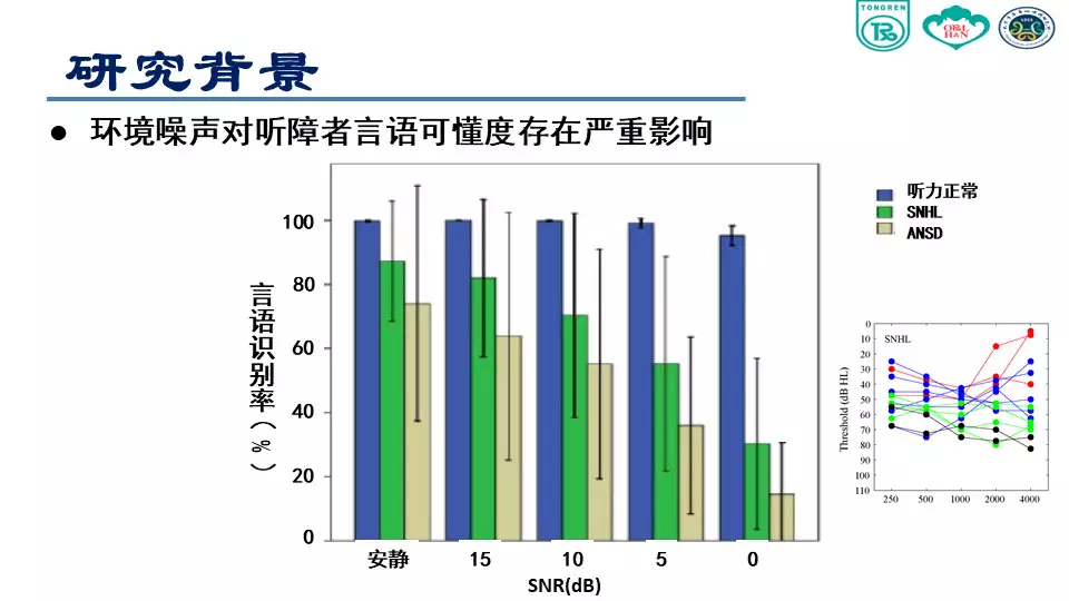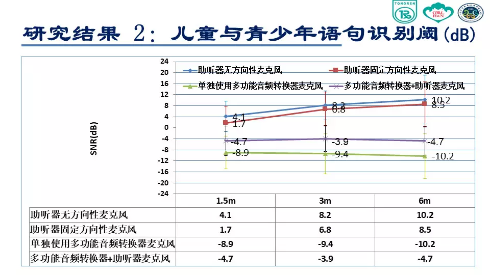 <br /><br /><br />環境噪聲對聽障者言語可懂度存在嚴重影響<br /><img src="/upfiles/201807200933345194.jpg" alt="" /><br />(感音神經性聾患者聽力圖)<br /><br /><br />在有噪聲的環境里,特別對于感音神經性聾患者來說非常困難,言語清晰度和可懂度會存在嚴重障礙。<br />在安靜環境或者信噪比為零的環境下,聽力正常人的表現基本接近 100%,說明聽力正常者的聽覺功能、抗噪功能是正常的。上圖綠色柱狀圖表示,伴隨著環境噪聲的增大,言語識別率遞減。<br /><br /><br /></span><p><span style="font-size:14px;">隨著與聲源距離的增加,強度迅速衰減,信噪比逐漸下降</span></p><p><span style="font-size:14px;"><img src="/upfiles/201807200933155202.jpg" alt="" /><br /></span></p><span style="font-size:14px;">已經實現的助聽輔助技術<br /><br /><br />FM 系統<br /><br /><br />數字無線配件:發射器、接收機數字信號傳輸<br /><br /><br />研究目的<br />本項課題主要是研究使用無線麥克風系統對聽障患者在噪聲條件下和遠距離環境下對言語識別能力改善的效果。<br /><br /><br />研究方法<br /><br /><br /><br /><br />助聽設備<br /><img src="/upfiles/201807200932488824.jpg" alt="" /><br /><br />測試材料<br /><br /><br /><br /><br />漢語普通話版噪聲下言語測試材料(Mandarin Hearing in Noise Test, MHINT)<br /><br /><br />成人測試材料<br /><br /><br />兒童測試材料<br /><br /><br />言語刺激聲<br /><br /><br />言語刺激聲分別來自受試者1.5m,3m和6m處<br /><br /><br />采用自適應的步驟來測試噪聲中的語句識別閾<br /><br /><br />環境噪聲<br /><br /><br />采用與測試材料本身頻譜接近的言語譜噪聲 (SSN)<br /><br /><br />噪聲強度為65 dB(A)<br /><br /><br /><br /><br />測試環境<br /><img src="/upfiles/201807200931496282.jpg" alt="" /><br /><br />??成人受試者<br /><img src="/upfiles/201807200931377495.jpg" alt="" /><br /><br />??程序設置<br /><br /><br />單獨使用助聽器麥克風(HA Mic Only):固定方向性<br /><br /><br />單獨使用迷你麥克風(Micro Mic Only)<br /><br /><br />同時使用助聽器麥克風和迷你麥克風(HA Mic+Micro Mic)<br /><br /><br />受試者距離言語信號揚聲器的距離<br /><br /><br />1.5m<br /><br /><br />3m<br /><br /><br />6m<br /><br /><br />隨機更換各種測試條件<br /><br /><br />兒童和青少年受試者<br /><br /><img src="/upfiles/201807200930455527.jpg" alt="" /><br />?程序設置<br /><br /><br />C1:單獨使用助聽器麥克風:全向性<br /><br /><br />C2:單獨使用助聽器麥克風:固定方向性<br /><br /><br />C3:單獨使用迷你麥克風<br /><br /><br />C4:同時使用助聽器麥克風和迷你麥克風<br /><br /><br />受試者距離言語信號揚聲器的距離<br /><br /><br />S1:1.5m<br /><br /><br />S2:3m<br /><br /><br />S3:6m<br /><br /><br />隨機更換各種測試條件<br /><br /><br />統計學分析<br /><br /><br />采用雙因素方差分析判斷受試者噪聲條件下言語識別閾是否受距離和程序設置的影響<br /><br /><br />分析距離對程序設置各水平的影響<br /><br /><br />分析程序設置對距離各水平的影響<br />研究結果<br />成人語句識別閾<br /><img src="/upfiles/201807200929474048.jpg" alt="" /><br /><br />?上圖中,藍色曲線表示助聽器麥克風打開的情況;綠色表示助聽器和迷你麥克風同時打開;紅色表示僅打開迷你麥克風。<br /><br /><br />我們可以看到,單獨使用助聽器麥克風情況下,言語識別閾從1.5m處的5.55 dB上升到6m處的13.11 dB。單獨使用迷你麥克風和使用迷你麥克風同時開啟助聽器麥克風這兩種情況下受試者言語識別閾隨距離變化不大。<br /><br /><br />在1.5m處單獨使用迷你麥克風比單獨使用助聽器麥克風信噪比可以獲得11dB的改善,同時這種改善會隨著距離的增加效果越來越明顯,在6m處可到20.6 dB。<br /><br /><br />兒童與青少年語句識別閾<br /><img src="/upfiles/201807200929214754.jpg" alt="" /><br /><br />??方向性麥克風的使用,隨著距離的增加,言語識別閾沒有明顯改善。<br />結論<br />單獨使用助聽器麥克風(全向性或方向性),伴隨距離增加,言語識別能力會顯著下降;<br /></span><p><span style="font-size:14px;">使用無線麥克風系統,言語識別能力不隨距離的改變而發生顯著改變,即可以顯著改善遠距離噪聲環境下言語識別能力。(內容來源網絡)</span></p><p><span style="font-size:14px;">聽覺有道助聽器品牌:http://www.fujibankin.com/</span></p>" />