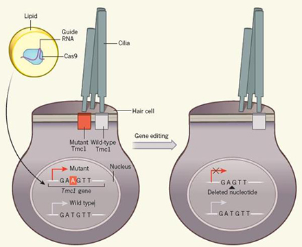 著名鋼琴家貝多芬在32歲時聽力完全喪失,其傷害不言而喻,他在留給其兄弟的遺囑中寫道,“正如落葉凋零,我的生命也已變得空洞?!?lt;/p><p> 盡管貝多芬聽力喪失的原因未知,但很多案例顯示聽力障礙實際都和遺傳DNA突變有關,而目前已知的和聽力障礙相關的基因有近100個。但迄今為止,幾乎沒有任何治療方法可以減緩或者逆轉聽力障礙。貝多芬逝世兩個世紀后的今天,阻止遺傳因素導致聽力障礙的技術離實現臨床已越來越近。</p><p> 哈佛大學醫學院耳鼻喉科副教授Zheng-Yi Chen和哈佛大學化學與化學生物學教授、美國博德研究所核心成員David R. Liu共同主導的一項研究在線發表在在國際著名期刊《自然》(Nature),該團隊用基因編輯技術治療TMC1突變“貝多芬小鼠”的遺傳性聽力障礙,并取得良好效果。</p><p> 內耳是聲音感知的最重要部位,其中內耳毛細胞又是人類聽到聲音的關鍵。其中,TMC1是內耳毛細胞中機械力傳導的重要組成部分,TMC1蛋白在內耳毛細胞的纖毛上形成通道,當聲波引起纖毛運動時這種通道就會打開,隨后鈣離子進入細胞生成電信號,電信號傳遞到大腦后形成聽覺。</p><p> TMC1發生了一種顯性負性錯義突變后,會導致內耳毛細胞單通道電流水平和鈣滲透率降低,進一步導致感音神經性語后聾(語言形成后出現聽力障礙)。通常,TMC1顯性突變患者在10-15歲時會開始逐漸變聾。</p><p> TMC1顯性突變即意味著,一對等位基因中只有一個發生突變就會導致功能喪失,從而致聾。這也就使得修復顯性突變成了一項精細的任務:必須使突變基因失活,同時還要保留野生型基因。這一對基因的差別只在于其中一個核苷酸的不同。突變的TMC1在原本野生型一個胸腺嘧啶核苷酸T的位置變成了腺嘌呤核苷酸A。</p><p> </p><center><img alt="" src="/upfiles/201903210248378799.png" width="440" height="360" /></center><p></p><p style="text-align: center;"> 基因編輯過程示意圖</p><p> Chen和Liu團隊啟用的是熱門的CRISPR–Cas基因編輯技術。研究團隊將含有Cas9和RNA的脂滴注入新生TMC1貝多芬小鼠的內耳,這種脂滴能和細胞隨后融合?;蚓庉嫼笸蛔兓蛑邢汆堰屎塑账酇被敲除,從而使該基因失活。但同時保留了野生型基因,保證正常聽力功能實現。</p><p> 研究團隊評估得出,基因編輯過的小鼠中內耳毛細胞的存活率更高、聽腦干反應閾值更低。此外,聽覺反射也出現改善,基因編輯過的成年貝多芬小鼠在聽到突發噪音時會表現出驚嚇,然而未經基因編輯的小鼠對此毫無反應。</p><p> 論文最后指出,這一治療途徑在治療和內耳毛細胞功能障礙有關的常染色體顯性遺傳聽力障礙方面具備潛力,也為反義寡核苷酸療法和RNA干擾療法提供了補充策略。</p><p> 更多詳情請登錄聽覺有道助聽器www.fujibankin.com</p>" />