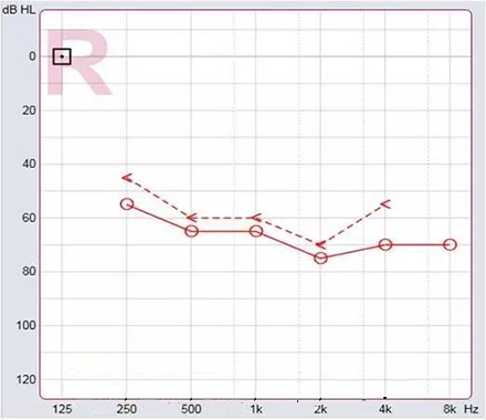 純音測試聽力圖的橫坐標為頻率,從左至右表示測試聲的頻率從低到高,即125Hz至8000Hz;縱坐標為強度,從上至下表示受試者能聽到的最小的聲音強度,以dBHL為單位。如下圖所示:</p><p> </p><center><img alt="" src="/upfiles/201903250213137760.png" width="440" height="400" /></center><p></p><p> 聽力圖的畫法自從1943年在C.C.Bunch的著作中出現后,至今沒有改變。通常右耳的測試結果用紅色表示,左耳用藍色。下圖是ASHA(1990)建議使用的各種標記符號,這些符號已在世界各地廣泛使用。</p><p> </p><center><img alt="" src="/upfiles/201903250213216822.png" width="440" height="250" /></center><p></p><p> 純音測試的測試項目有氣導、骨導、舒適閾與不舒適閾。那么這簡簡單單的聽力圖在驗配過程中有哪些重要作用呢?</p><p> 1、確定聽力損失程度</p><p> 按照世界衛生組織(WHO)1997年的標準,根據0.5kHz、1kHz、2kHz、和4kHz氣導平均聽閾值,將聽力損失分為輕度、中度、重度和極重度。</p><p> </p><center><img alt="" src="/upfiles/201903250213312187.png" width="440" height="180" /></center><p></p><p> 世界衛生組織(WHO-1997)的聽力障礙分級標準</p><p> 舉例</p><p> 下圖為某一聽力損失者所測得的聽力圖</p><p> </p><center><img alt="" src="/upfiles/201903250213367902.png" width="440" height="380" /></center><p></p><p> 0.5kHz的聽閾為65dBHL,1kHz的聽閾為65dBHL,2kHz的聽閾為75dBHL,4kHz的聽閾為70dBHL。則平均聽閾為(65+65+75+70)/4=68.75。將68.75dBHL代入以上分級表格,得到該聽力損失者的損失程度為重度。 聽力損失程度的確定有利于確定助聽器的功率。</p><p> 2、判斷聽力損失性質</p><p> 根據氣導、骨導的關系,可將聽力損失分為傳導性聽力損失、感音神經性聽力損失及混合性聽力損失。</p><p> 骨導與氣導之差大于10dB,且骨導在正常范圍內為傳導性聽力損失,表明聽力下降是由外耳、中耳病變引起。</p><p> 氣骨導一致(≤10dB)且都在正常范圍之外為感音神經性聽力損失。表明聽力下降是由耳蝸、聽神經損傷引起。</p><p> 骨導與氣導之差大于10dB,但骨導在正常范圍之外為混合性聽力損失,表明以上兩種聽力損失均有,由上述多種部位病變引起聽力下降。確定聽力損失性質還需結合臨床表現,也有助于助聽器佩戴效果的預測。</p><p> 3、解釋聽力損失者的日常生活困難</p><p> 聽力損失者在日常生活中經常遇到的問題有1)時而聽得到,時而聽不到;2)聽得到,聽不清;3)小聲聽不到,大聲受不了。</p><p> 時而聽得到時而聽不到</p><p> 以下圖平坦型聽力曲線為例,當周圍言語聲高于其聽閾,即處于曲線下方區域時,該聽力損失者能聽到;當周圍言語聲低于其聽閾,即處于曲線上方區域時,聽力損失者則聽不到對方的說話聲。此為“時而聽得到,時而聽不到”。</p><p> </p><center><img alt="" src="/upfiles/201903250213445950.png" width="440" height="340" /></center><p></p><p> 聽得到 聽不清</p><p> 中文漢語元音輔音的頻率及響度有其分布圖,如下圖所示。以陡降型聽力曲線為例,該聽力損失者聽不到大部分的輔音。聽得清不清楚,主要取決于高頻輔音聽得到聽不到。例如該聽力損失者“g”、“ch”聽不到,但“u”能聽到,因此,他會將“姑姑”、“出租”都聽成“uu”。聽不清楚時,再結合口型,前后句的冗余度猜測。猜對則談話繼續,猜錯則打岔。兒童聽力曲線若是如此,長期接收不正確的語音,會出現口齒不清。</p><p> </p><center><img alt="" src="/upfiles/201903250213526855.png" width="440" height="340" /></center><p></p><p> 小聲聽不到 大聲受不了</p><p> 小聲聽不到,大聲受不了是重振現象。以下圖聽力曲線為例,“飛機”處于不舒適閾附近,聽力損失者對“飛機”的聲音聽著受不了。另外,該聽力損失者聽不到“手表”等聲音。</p><p> </p><center><img alt="" src="/upfiles/201903250214013300.png" width="440" height="385" /></center><p></p><p> 為了更好地使聽力損失者家屬明白聽力損失者的困難,目前有較多的工具可以模擬聽力損失狀態下的溝通與交流。</p><p> </p><center><img alt="" src="/upfiles/201903250214075950.png" width="440" height="370" /></center><p></p><p> 比如,在聲音樣本中選擇“餐廳”,并選擇“正?!?,可聽到正常聽力者在“餐廳”環境中聽到的聲音;若選擇“患者”,則可使聽力正常者聽到聽力損失者聽到的聲音,令聽力正常者親身體驗他們所處的“模糊世界”。</p><p> 在“典型聽力圖”中,有“輕度”、“中度”、“重度”、“極重度”、“陡降型聽力”等選項,若選擇“重度”,則可體驗重度聽力損失者所聽到的聲音。</p><p> 4、調試</p><p> 聽力圖在助聽器驗配調試過程中也起著非常重要的作用。</p><p> 首次驗配</p><p> 助聽器處方公式結合聽力圖計算出聽力損失者的目標增益,為驗配師的進一步調節奠定了基礎。聽力圖結果越準確,首次驗配的滿意度越高。</p><p> 調試</p><p> 在助聽器調試過程中,不能忽視聽力圖的作用。舉一實例:下圖為某助聽器佩戴者的聽力圖,經過多次降低高頻增益,仍反應聲音刺耳。通過對聽力圖的觀察,該佩戴者2kHz處的聽閾較高,且2kHz處的增益亦較多。將2kHz處的增益降低后,助聽器佩戴者的滿意度提高。</p><p> 讀懂聽力圖是驗配助聽器過程中非常重要的一環,只有讀懂聽力圖并解釋清楚聽力圖,對成功驗配助聽器可達到事半功倍的效果。在助聽器驗配調試環節,亦不能忽視聽力圖。聽力圖在整個助聽器驗配過程中起到不可替代的作用。</p><p> 更多詳情請登錄聽覺有道助聽器www.fujibankin.com</p>" />