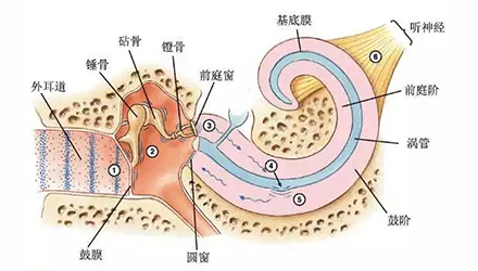 人體各器官功能取決于其生理結構,高頻陡降性聽力損失最為常見主要與耳部各個解剖部位有關。</p><p> 1、外耳的漏斗狀結構和彎曲“S”型耳道,此結構使得外界的聲學物理發生了變化。</p><p> </p><center><img alt="" src="/upfiles/201904030222181282.png" width="440" height="250" /></center><p></p><p> 如上圖所示,人類耳廓及耳道對不同頻率段的聲音增益變化可以看出:在頻率2kHz-4kHz范圍耳道對聲音增益最大。研究表明噪聲引起的聽力損失常常位于噪聲頻率之上的一倍頻率程處,工業噪聲位于低中頻范圍內相對恒定,外耳道自然共振峰為2kHz-4kHz,故最容易導致4kHz-6kHz頻率范圍內聽力損失。這也就是為什么噪聲性聽障起初聽力損失常常從4KHz左右開始,逐漸損害影響至更好頻率。</p><p> 2、耳蝸螺旋狀結構</p><p> </p><center><img alt="" src="/upfiles/201904030222256648.png" width="440" height="250" /></center><p></p><p> 聲音從外耳道經聽骨鏈傳至內耳前庭窗,懸浮在耳蝸內的基底膜剪切運動引起其上的毛細胞電位變化,傳至大腦皮層感受聲音。</p><p> 耳蝸結構類似蝸牛呈螺旋結構,約2.5圈-2.75圈。聲波在基底膜上的傳播方式,是按物理學中的行波原理進行的,亦即行波學說(travellingwavetheory)。基底膜的最大振幅部位與聲波的頻率有關,亦即每一種頻率的聲波在基底膜上不同位置有一相應的最大振幅部位:高頻聲引起的最大振幅部位在蝸底靠近前庭窗處,低頻最大振幅靠近蝸頂,中頻在中間部分發生共振。由此可知,聲音從高頻到低頻的傳播途徑均需底周基底膜的振動,即高頻段的基底膜相對容易疲勞。同時耳蝸底周基底膜毛細胞含有比頂端毛細胞更低的抗氧化酶,故氨基糖苷類抗生素(慶大霉素、卡那霉素、鏈霉素等)耳毒性藥物出現的聽力損失都為陡降型聽力曲線。</p><p> 3、聽神經音頻分布</p><p> </p><center><img alt="" src="/upfiles/201904030222303234.png" width="440" height="250" /></center><p></p><p> 聽神經分布與耳蝸基底膜螺旋結構一脈相承,感受低頻的神經位于中心,感受高頻的聽神經位于外周。外傷、缺血缺氧、皰疹病毒等理化環境的變化首先影響到高頻。</p><p> 更多詳情請登錄聽覺有道助聽器www.fujibankin.com</p>" />