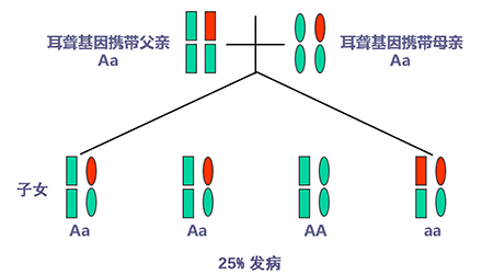 聽力正常有時只是“表象”,如果骨子里“隱藏”著聽損致病基因,這代“躲”過了聽力損失,可是下一代、下下一代呢?</p><p> 生活中我們會發現,有一些父母雙方都有正常的聽力,但生出的孩子卻患有遺傳性聽力損失,很多人都會感到詫異,甚至父母本身都無法相信自己竟然生出了弱聽的孩子。</p><p> 其實,此類“怪異事情”的發生離不開基因的作用,這與遺傳性聽損中的常染色體隱性遺傳密切相關。</p><p> 今天就帶大家看看:常染色體隱性遺傳性聽損是怎么一回事?它有什么特點呢?基因又是如何“從中作祟”的呢?</p><p> 先來說說隱性遺傳為什么“隱藏”在骨子里</p><p> 俗話說,龍生龍,鳳生鳳,老鼠的兒子會打洞。這些表現都是基因所賦予的、與生俱來的,我們稱這種表現是顯性的。但有時,即便你骨子里帶著那份基因,可是沒有表現出來。</p><p> 例如上文說到的,父母雙方聽力正常,但其實他們仍有聽損致病基因,這種表現就叫隱性。</p><p> </p><center><img alt="" src="/upfiles/201904260337585875.png" width="440" height="250" /></center><p></p><p> 接著說說常染色體隱性遺傳性聽損“隱藏”的聽力損失</p><p> 常染色體隱性遺傳性聽損是指與聽力損失表型相關的基因位于常染色體上,是最常見的遺傳性聽損,約占80%。 一般而言,這類聽力損失多指非綜合征型聽損,即聽力下降是其唯一臨床表現,大多數患者癥狀早發且程度較重。</p><p> 這類聽力損失只有在來自父母的等位基因均攜帶致病突變時才出現聽力下降。</p><p> </p><center><img alt="" src="/upfiles/201904260338048765.png" width="440" height="250" /></center><p></p><p> 根據人類基因組命名委員會的規則,以DFNB來表示常染色體隱性遺傳性聽損。</p><p> 第一個致病基因座位表述為DFNB1,此后依據基因座發現及獲得命名的時間順序,依次命名為DFNB2,DFNB3……</p><p> 目前,常染色體隱性遺傳的基因座位一共有86個。其中DFNB1和DFNB18中各有兩個聽損致病基因,其他為各一個聽損致病基因。</p><p> 例如,GJB2基因是中國人最常見的聽損致病基因,在兒童非綜合征聽損中占40%,其基因座位為DFNB1。</p><p> </p><center><img alt="" src="/upfiles/201904260338091241.png" width="440" height="250" /></center><p></p><p> 聽損隱性遺傳表現各式各樣不是想“躲”就能“躲”</p><p> 涉及到不同聽損致病基因的共同作用,常染色體隱性遺傳方式有很多,下面就以最常見且最簡單的方式進行舉例分析:</p><p> 1. 父母雙方聽力正常,都為聽損致病等位基因的攜帶者(Aa),則子女中有25%的概率患有聽力損失,50%的概率為聽損致病基因攜帶者。</p><p> </p><center><img alt="" src="/upfiles/201904260338147337.png" width="440" height="250" /></center><p></p><p> 2. 父母雙方都患有聽力損失,且聽損致病基因為等位基因(aa),則子女基因都為(aa),100%患有聽力損失,也就是代代相傳。</p><p> </p><center><img alt="" src="/upfiles/20190426033818859.png" width="440" height="250" /></center><p></p><p> 3. 父母一方為聽力正常者(AA),另一方患有聽力損失(aa),則子女基因都為(Aa),即聽力正常的聽損致病基因攜帶者。</p><p> </p><center><img alt="" src="/upfiles/201904260338249987.png" width="440" height="250" /></center><p></p><p> 4. 父母一方為聽力正常的聽損致病基因攜帶者(Aa),另一方患有聽力損失(aa),則子女基因50%的概率為聽力正常但攜帶聽損致病基因(Aa),50%的概率患有聽力損失(aa)。</p><p> </p><center><img alt="" src="/upfiles/201904260338297827.png" width="440" height="250" /></center><p></p><p> 5. 父母雙方都有聽力損失,但非等位基因,父親為(aaBB),母親為(AAbb),則子女基因都為AaBb,即100%的概率聽力正常。</p><p> </p><center><img alt="" src="/upfiles/201904260338427827.png" width="440" height="250" /></center><p></p><p> 常染色體隱性聽損遺傳的特征下一代“躲”得過嗎?根據如上分析,我們可以總結常染色體隱性遺傳性聽損具有以下特征:</p><p> 1. 聽損致病基因位于常染色體,因而聽損致病基因的遺傳與性別無關,即男、女性的患病機會均等;</p><p> 2. 系譜中通常看不到連續傳遞現象,往往是散發病例,但同胞中可有多人患病;</p><p> 3. 患者的雙親一般不患病,但都是致病基因的攜帶者;</p><p> 4. 患者的同胞有1/4的風險患病,患者表型正常的同胞中有2/3的概率為攜帶者;</p><p> 5. 患者的后代一般不發病,但一定是聽損致病基因攜帶者;</p><p> 6. 近親婚配時,子女的發病風險顯著提高,因為共同的祖先可能傳遞給他們共同的突變基因。</p><p> </p><center><img alt="" src="/upfiles/201904260338494272.png" width="440" height="250" /></center><p></p><p> 可見,遺傳性聽損有多種多樣的表現形式,需要細分遺傳模式。 父母的不同表型和不同聽損致病基因決定了其后代各種各樣的表現形式。</p><p> 正常聽力的父母可能生出弱聽的孩子,哪怕是同有聽損的父母也有可能生出聽力正常的孩子。</p><p> 隱性基因表現各異怎么辦?唯有基因檢測明確</p><p> 所以,要想知道自己及其配偶是否攜帶聽損致病基因,是否會遺傳給后代,后代的遺傳概率有多大,如何規避部分致病基因導致的聽力下降......唯有通過遺傳性聽障基因檢測。</p><p> 才能幫助我們更好了解各種可能的表現形式,進而準確分析遺傳模式,推斷后代可能患有聽損的概率,以規避生育風險及日后的精神和經濟負擔。</p><p> 畢竟,隱性遺傳雖可以讓我們表現為聽力正常,但是如果骨子里終究是“隱藏”著聽損致病基因,這代“躲”過了聽力損失,沒有“顯現”出來,那下一代、下下一代呢?</p