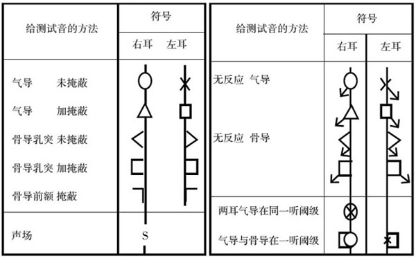 橫坐標代表頻率,以倍頻程為單位分隔——請記住倍頻程的概念,它指兩個頻率間的間隔,高頻是相鄰低頻的兩倍;縱坐標代表強度。右耳氣導用紅色“○”標記,左耳用藍色“×” 標記,閾值就是頻率與強度的交叉點位置。比如某人左耳在250Hz處的聽閾是30dBHL,則在250Hz這一軸線上30dB HL中點劃一藍叉。30dB HL是聽閾,正常人的聽閾是-10dB HL~25dB HL,也就是說,這個人的聽力損失(也可稱做聽敏度的下降)只有5dB HL。</p><p> </p><center><img alt="" src="/upfiles/201906100159589704.png" width="600" height="373" /></center><p></p><p style="text-align: center;">國家統一聽力標記符號</p><p> 用聽力圖表示聽閾級時,應采用上表所給符號,對氣導相鄰點用直線連接,骨導用虛線連接。如在聽力計最大輸出級仍無反應,可在相應符號處垂直向下畫一箭頭,或在符號的下外角與垂直方向約成45o角向下畫一箭頭(即左耳符號箭頭向右,右耳符號箭頭向左)。無反應的符號應記在聽力圖上代表聽力計最大輸出的聽力級處。如用彩色筆記錄,右耳符號和連線為紅色,左耳符號與連線為藍色。從篩選測聽法得出的結果應清楚地照此表示出來。</p><p> 更多詳情請登錄聽覺有道助聽器www.fujibankin.com</p>" />