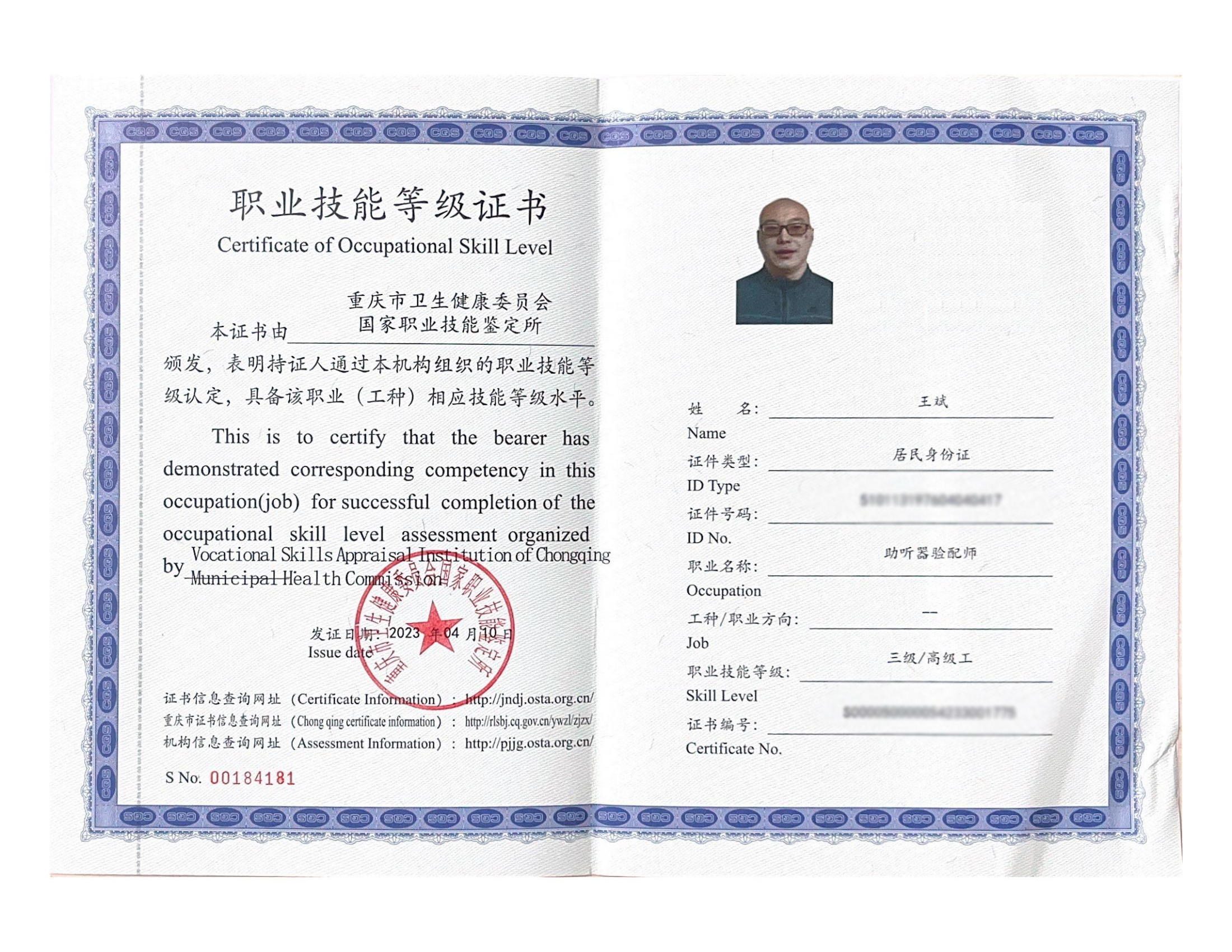 <span style="white-space:pre"> </span>熱烈祝賀聽(tīng)覺(jué)有道全國(guó)聽(tīng)力連鎖聽(tīng)力專(zhuān)家王斌、王杰、蔣方琴和任會(huì)敏榮獲國(guó)家認(rèn)證三級(jí)助聽(tīng)器驗(yàn)配師職業(yè)資格證書(shū)!<br /><br /> <strong>驗(yàn)配師職業(yè)資格證書(shū)</strong><br /><br /> 助聽(tīng)器驗(yàn)配師是一個(gè)有技術(shù)深度的職業(yè),對(duì)聽(tīng)力知識(shí)儲(chǔ)備和實(shí)踐操作熟練度都有一定要求。<br /><br /> 這張由國(guó)家機(jī)構(gòu)認(rèn)證頒發(fā)的驗(yàn)配師職業(yè)資格證書(shū),正是最具權(quán)威性和直觀公平的評(píng)判標(biāo)準(zhǔn)。<br /><br /></span><p><span style="font-size:16px;"> 本次三級(jí)助聽(tīng)器驗(yàn)配師職業(yè)技能等級(jí)認(rèn)定,聽(tīng)覺(jué)有道參與人數(shù)4人,通過(guò)認(rèn)定4人,通過(guò)率為100%!</span></p><p><span style="font-size:16px;"><br /></span></p><p style="text-align: center;"><img src="/upfiles/20230511114521111.gif" width="640" alt="" /><br /></p><p style="text-align: center;"><br /></p><span style="font-size:16px;"><strong> 千里之行,始于足下</strong><br /><br /> 參與等級(jí)認(rèn)定的人員中,有認(rèn)真嚴(yán)謹(jǐn)?shù)膮^(qū)域運(yùn)營(yíng)經(jīng)理,深受歡迎的區(qū)域技術(shù)培訓(xùn)主管,顏值實(shí)力并存的區(qū)域負(fù)責(zé)人以及非常資深的兒童聽(tīng)力專(zhuān)家。<br /><br /> 他們都有共同的身份:一名優(yōu)秀的助聽(tīng)器驗(yàn)配師。<br /><br /> 事實(shí)上,他們的實(shí)力早已達(dá)到三級(jí)助聽(tīng)器驗(yàn)配師的標(biāo)準(zhǔn)。本次出征,信心滿滿,底氣十足,凱旋而歸!<br /></span><p style="text-align: center;"><img src="/upfiles/202305111145405493.jpg" width="640" alt="" /><br /></p><span style="font-size:16px;"> <strong>奮楫篤行,臻于至善</strong><br /><br /> 該職業(yè)技能等級(jí)證書(shū)由重慶市衛(wèi)生健康委員會(huì)國(guó)家職業(yè)技能鑒定所頒發(fā)。該鑒定所也是2020年底助聽(tīng)器驗(yàn)配師考試改革后,全國(guó)備案成功的首家衛(wèi)健委系統(tǒng)鑒定機(jī)構(gòu),具有權(quán)威性。<br /><br /> 聽(tīng)覺(jué)有道深耕聽(tīng)力行業(yè)20多年,一直致力人才培養(yǎng),提升全體驗(yàn)配師的綜合業(yè)務(wù)能力,用專(zhuān)業(yè)、規(guī)范的技能解決聽(tīng)損人士的問(wèn)題,助其重新聆聽(tīng),感受世界的美好!<br /><br /></span><p><span style="font-size:16px;"> 期待全體驗(yàn)配師向優(yōu)秀榜樣學(xué)習(xí)!行而不輟,履踐致遠(yuǎn)!</span></p><p><span style="font-size:16px;"><br /></span></p><p style="text-align: center;"><img src="/upfiles/202305111145592511.jpg" width="640" alt="" /><br /></p>" />